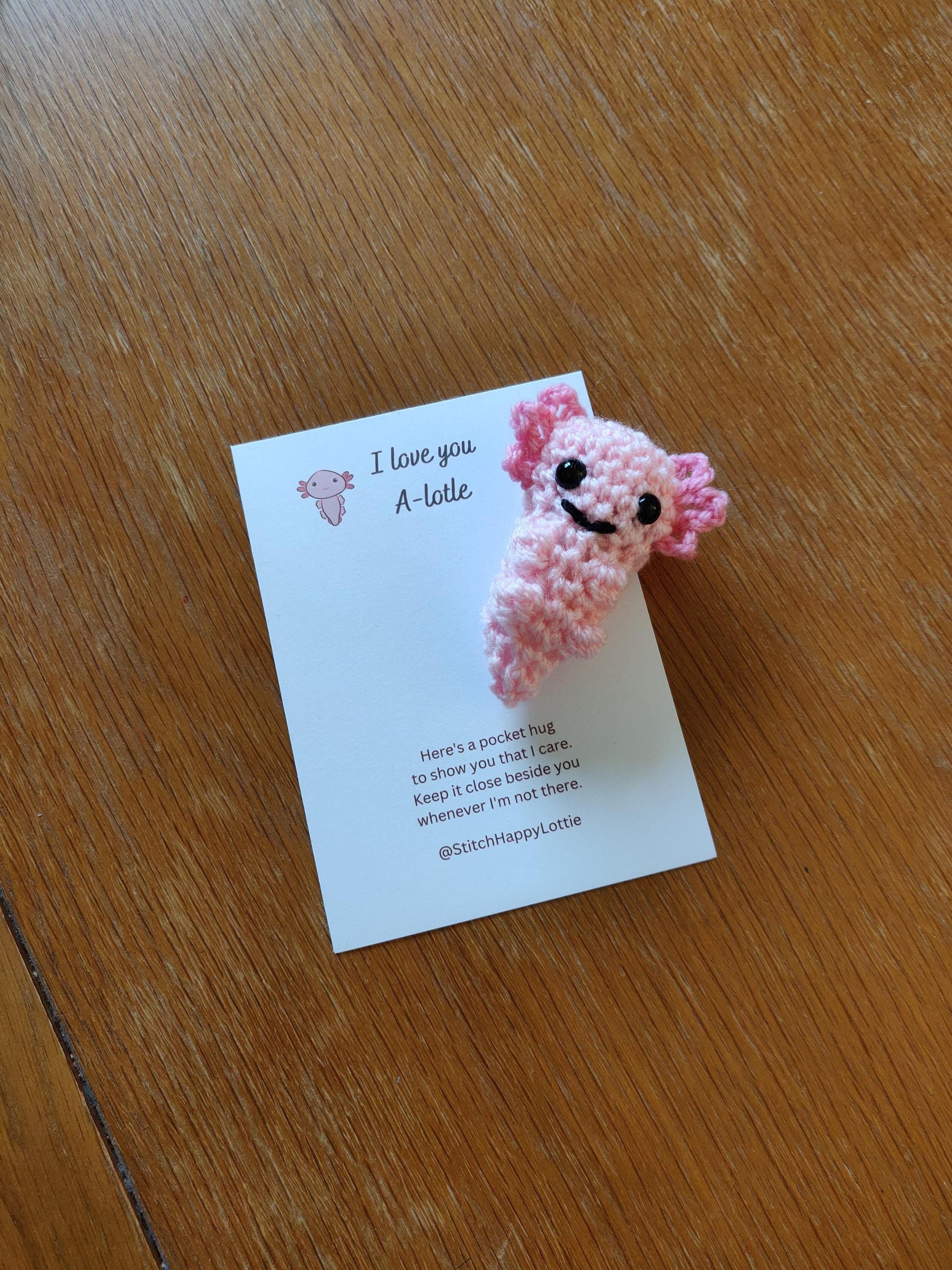 Crochet Axolotl Pocket Hug Token, Positive Gift Card, Valentines Day