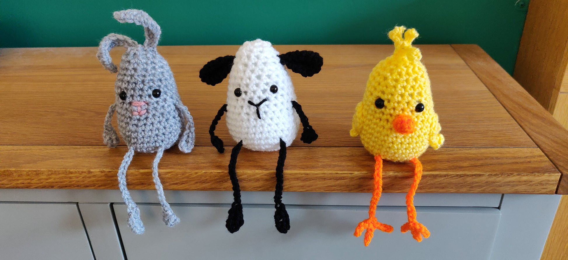 This chick looks great sat on a shelf or mantelpiece with its long legs dangling down.