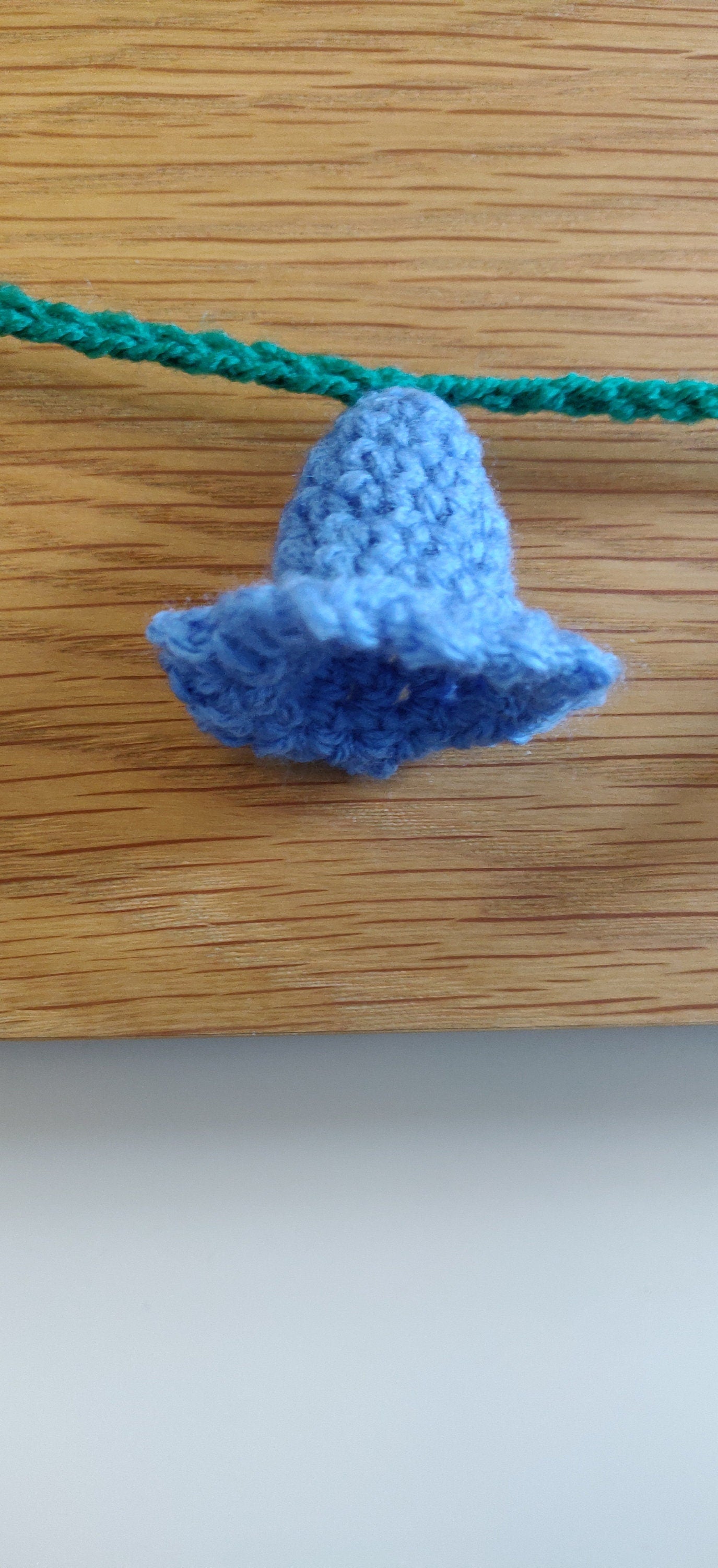 This beautiful bluebelle bunting has 6 crochet flowers on a green stem string!
