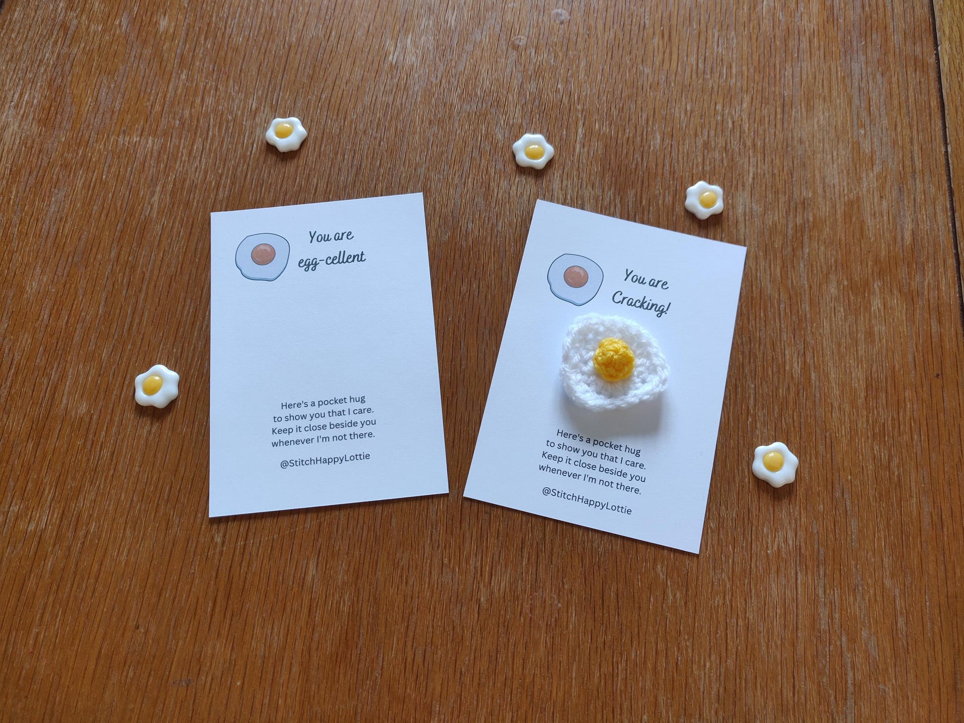 Crochet Fried Egg Pocket Hug Token: Positive Gift
