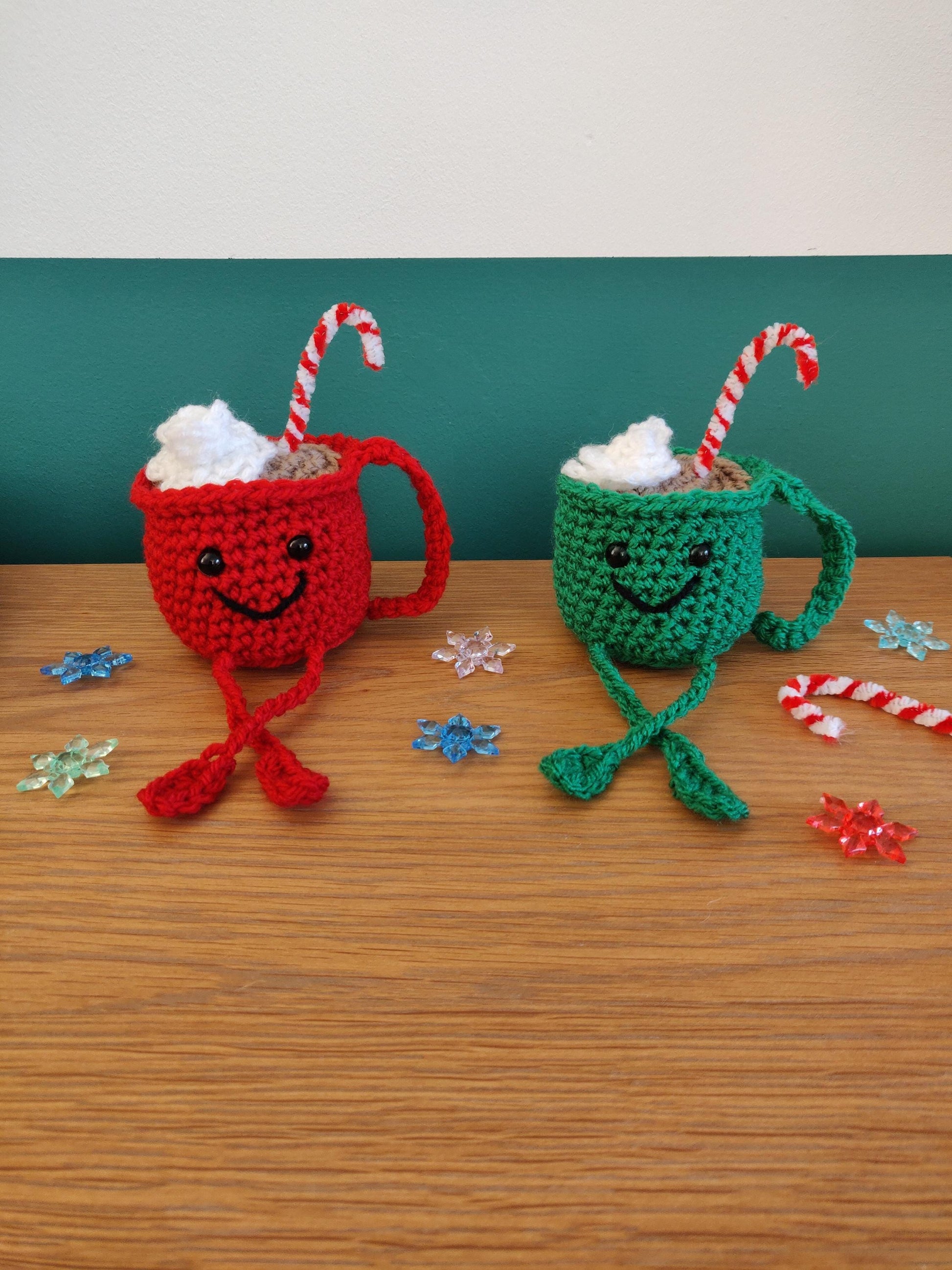 Crochet Hot Chocolate Mug Ornament, Candy Cane Christmas Decor