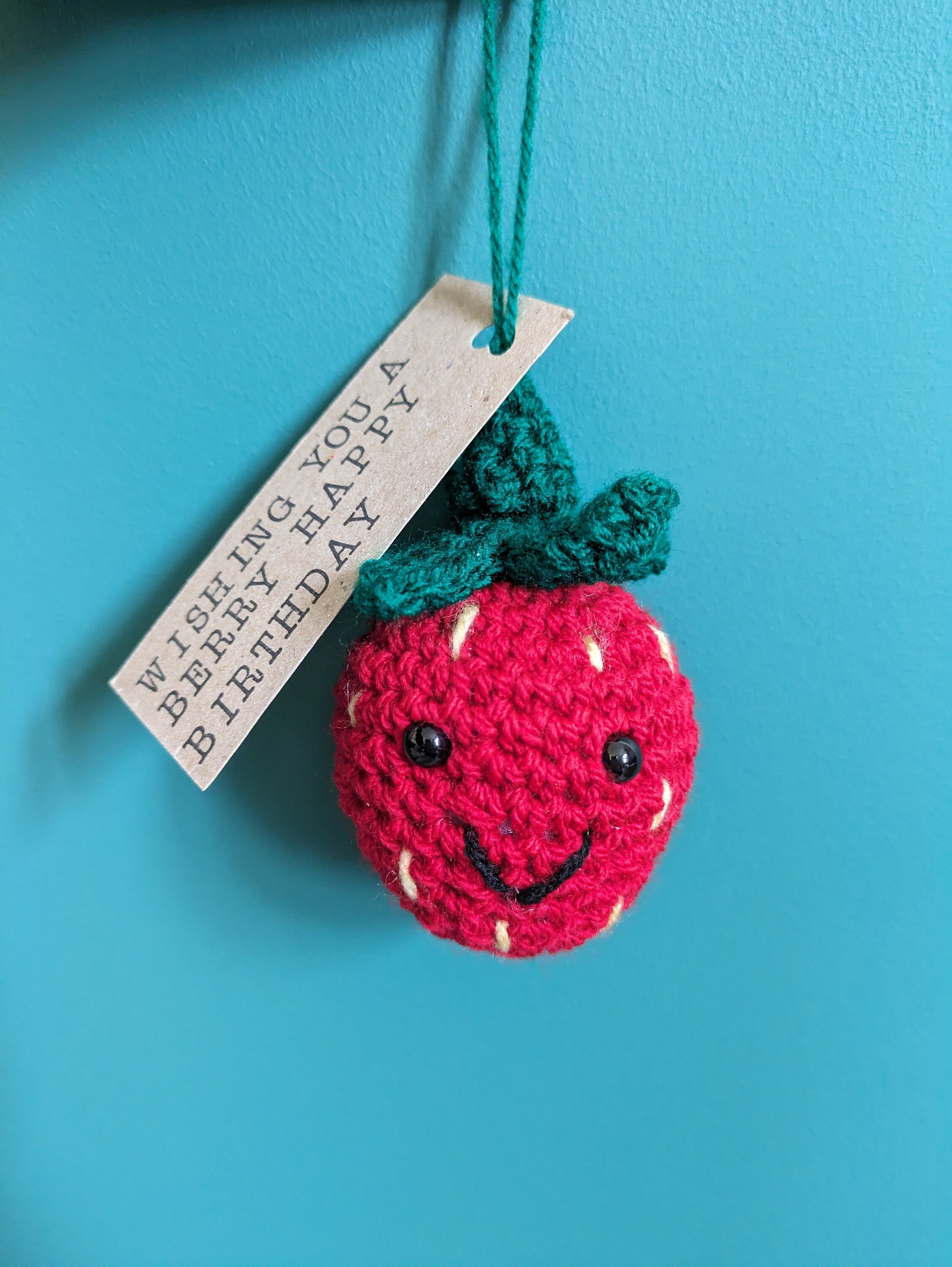 Crochet Strawberry Car Charm: Pun Gift Tag, Anniversary, Valentine