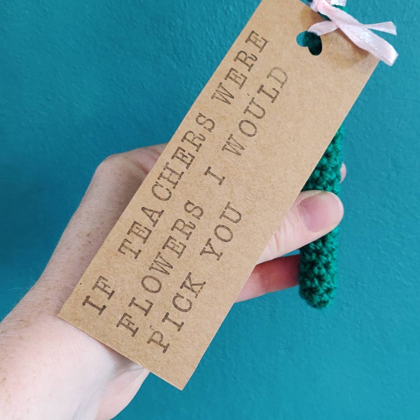 The sunflower also comes with a hand-printed personalised tag. It can also have your child's teacher's name added to the tag.