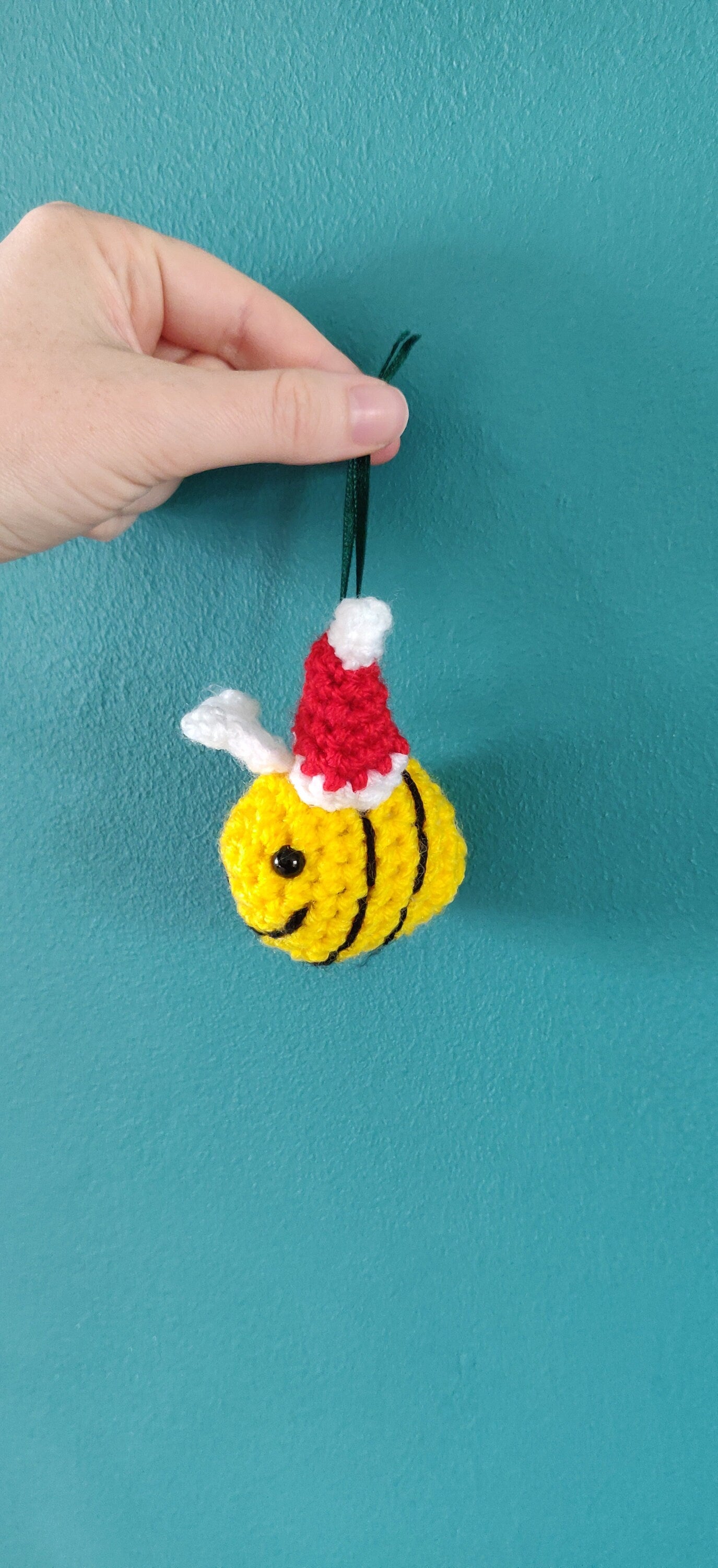 I have crocheted this cute bumble bee and it has been transformed for Christmas with his own Santa hat!