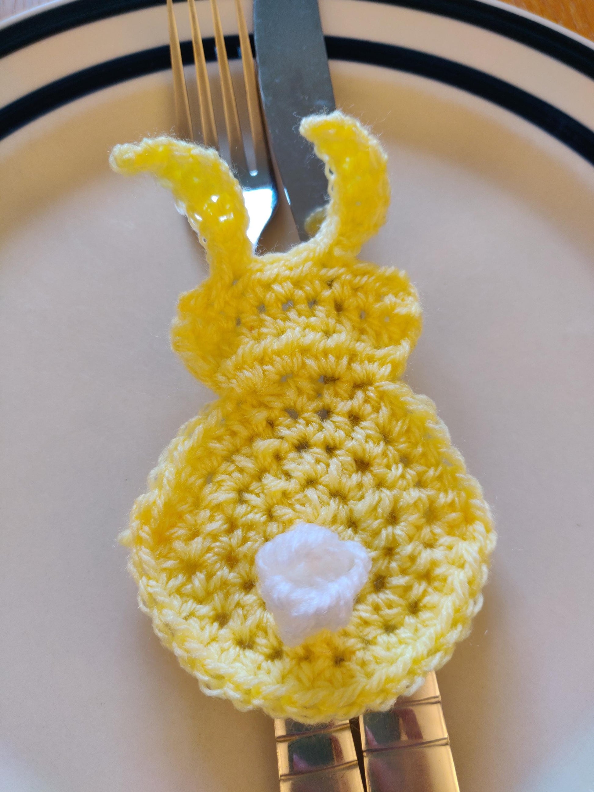 Easter Bunny Cutlery Holder, Carrot Cutlery Pouch, Easter Table Decoration, Pastel Bunny, Crochet Rabbit, Housewarming Gift, Bunny Tail, Ear