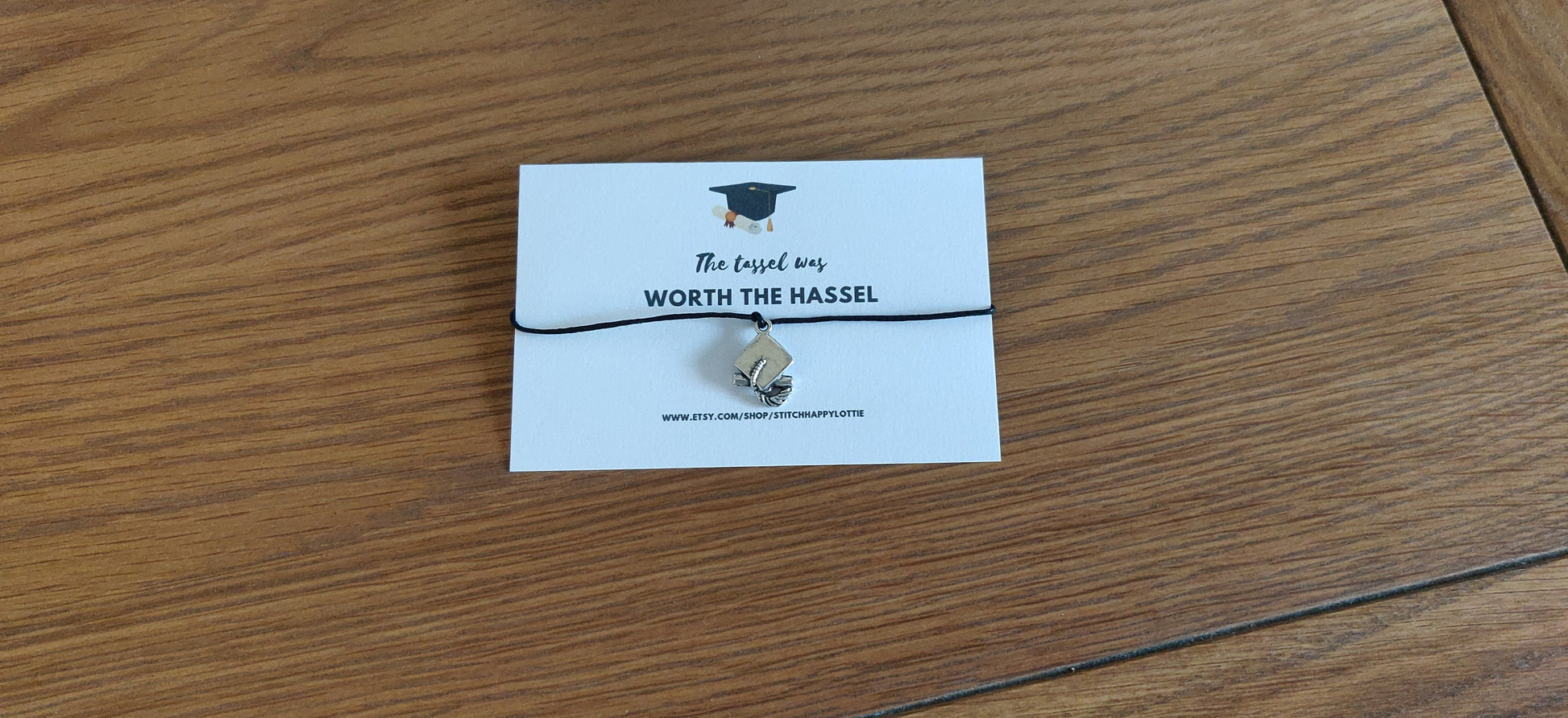 A lovely charm bracelet or wristband keepsake for all the hard work they put in to graduate.