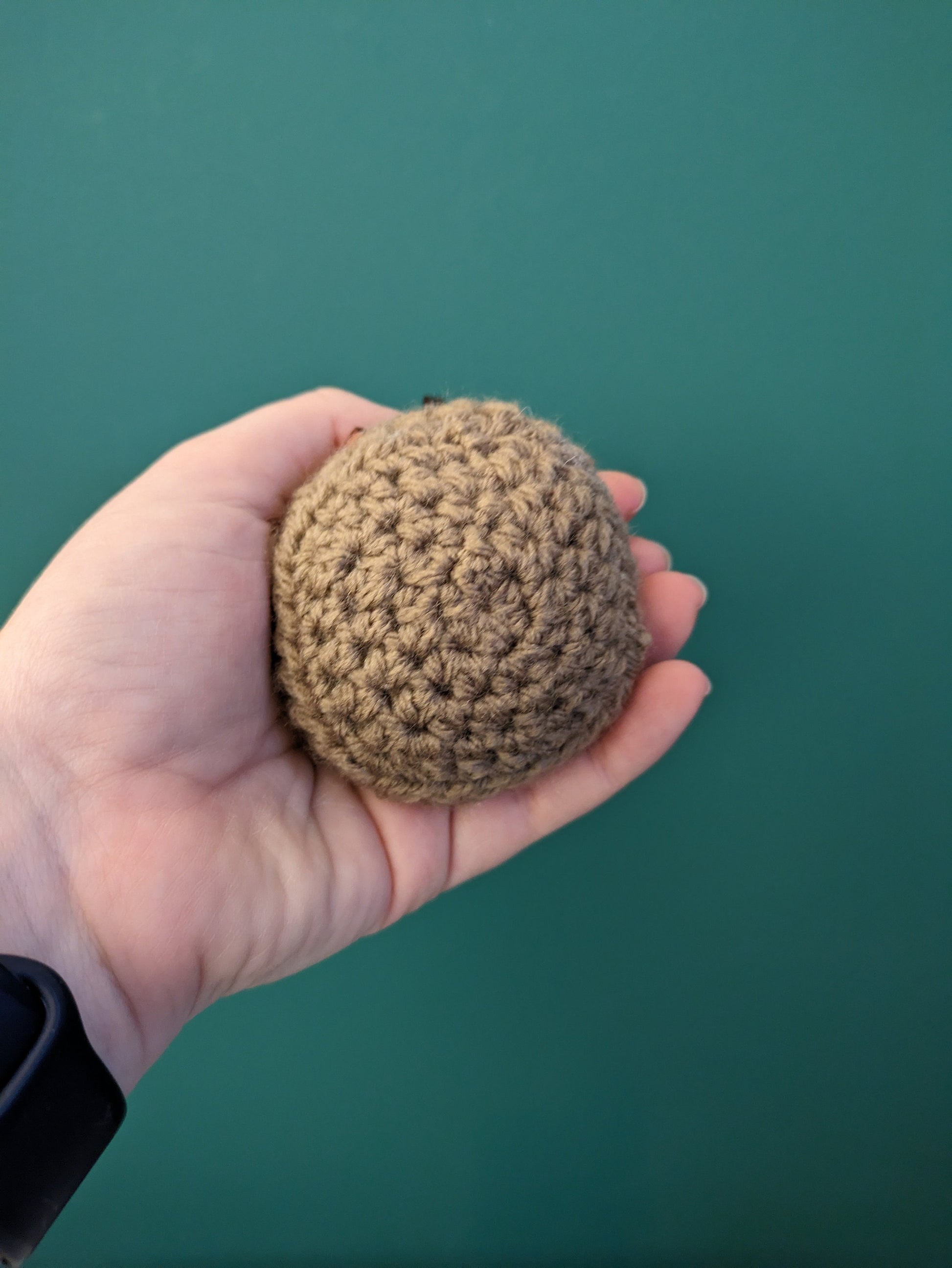 This tasty hot cross bun has been crocheted in brown and a cream cross on top to create the traditional look.