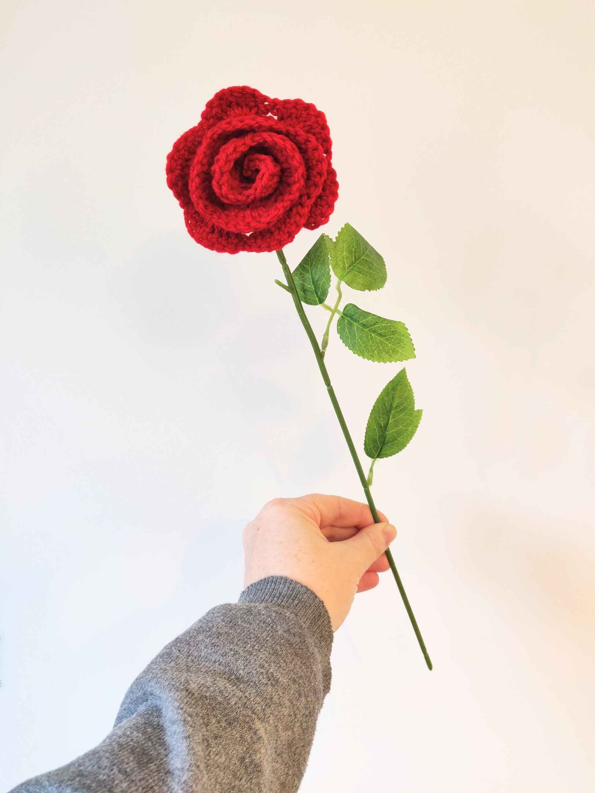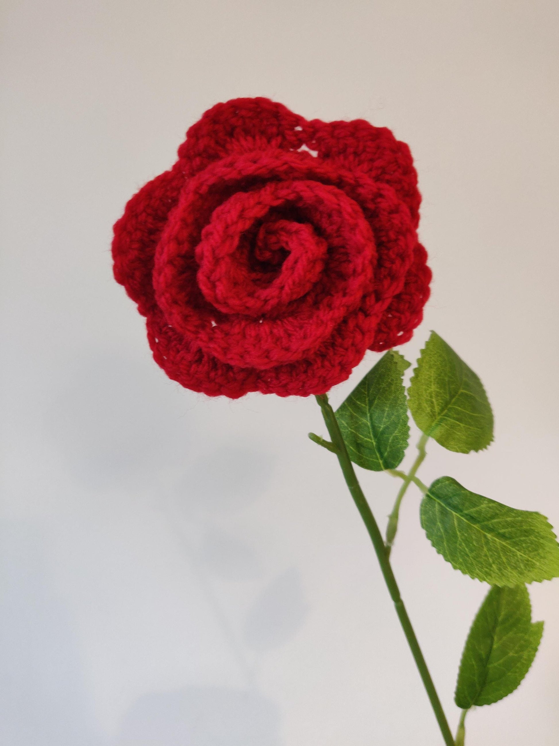 This beautiful crochet red rose in bloom will make a beautiful gift for any loved one.