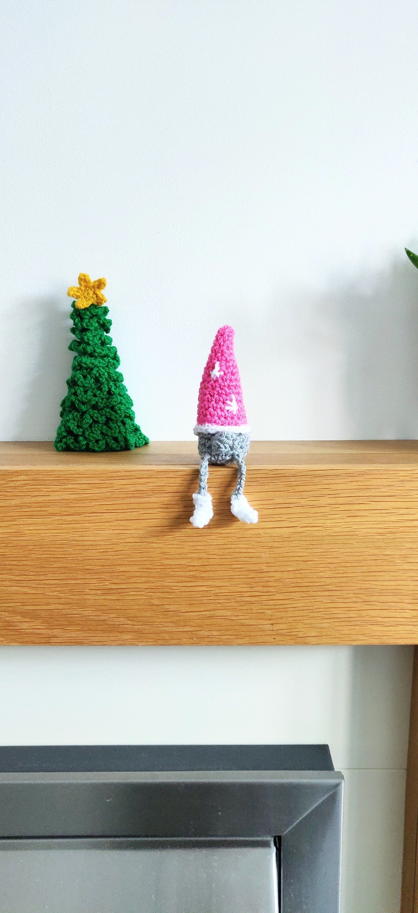 This mini gonk has a pink hat with icicle decorations, a grey body and nose and white boots. This little elf/gnome makes a cute decoration this Christmas.