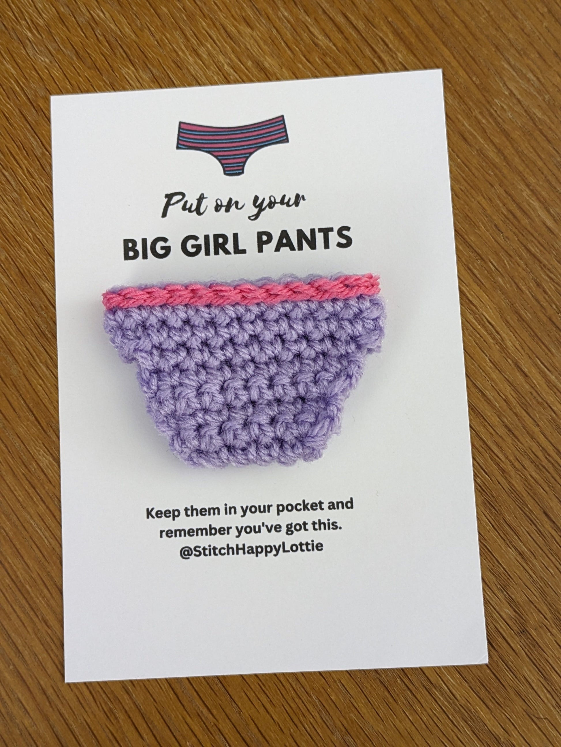 Positive Pants Gift Card, Crochet Pocket Knickers, Get Well Soon