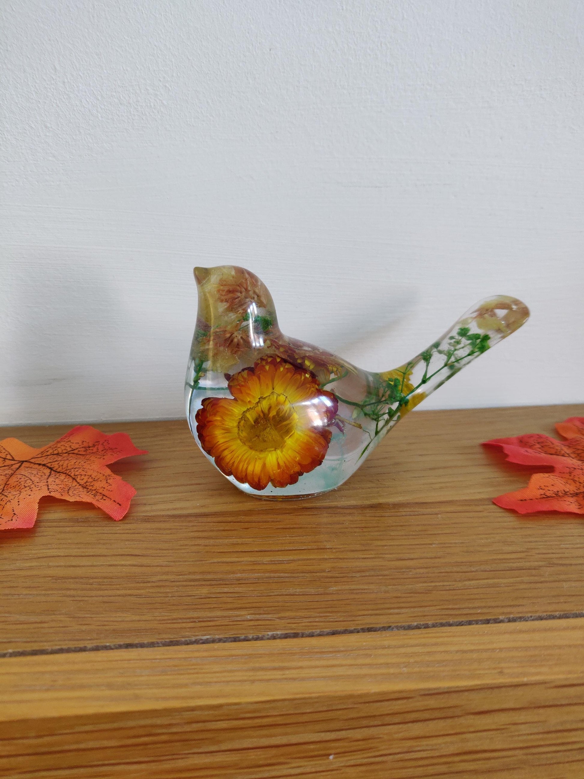 It makes a lovely ornament to sit on a shelf or desk and has an spring/summer feel.
